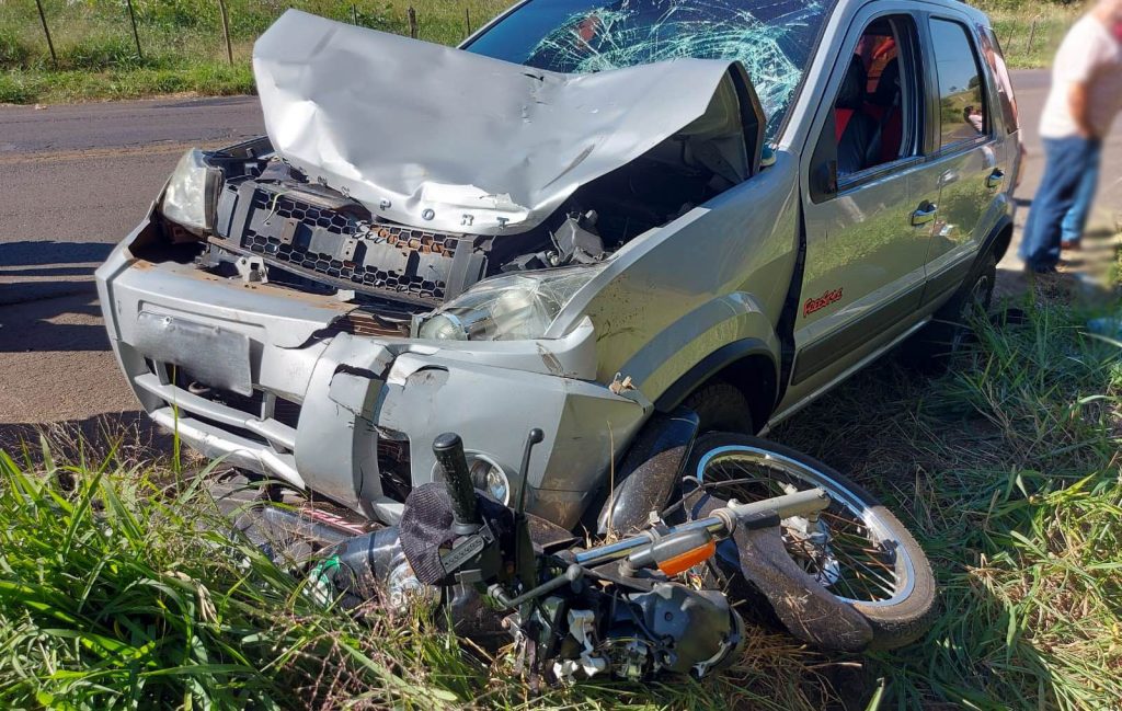 Um grave acidente entre um carro e uma motocicleta deixou duas pessoas feridas, na tarde deste sábado (10), em Matão-SP.