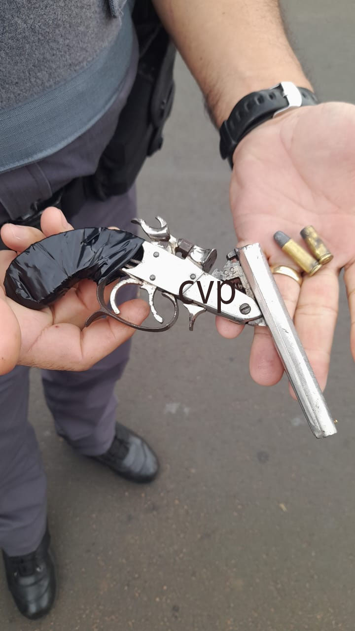 De acordo com as informações preliminares, os bandidos em poder de uma garrucha, renderam a vÃtima e anunciaram o roubo. A vÃtima reagiu, tomou a arma dos bandidos e ainda efetuou um disparo de arma de fogo contra os roubadores. Eles acabaram fugindo com moto.  A PM foi acionada e encontrou a moto abandonada no bairro Antenor Garcia. A arma usada pelos bandidos, a qual foi tomada pela vÃtima, foi entregue para a PM. O cerco foi fechado e os criminosos podem ser presos a qual momento.
