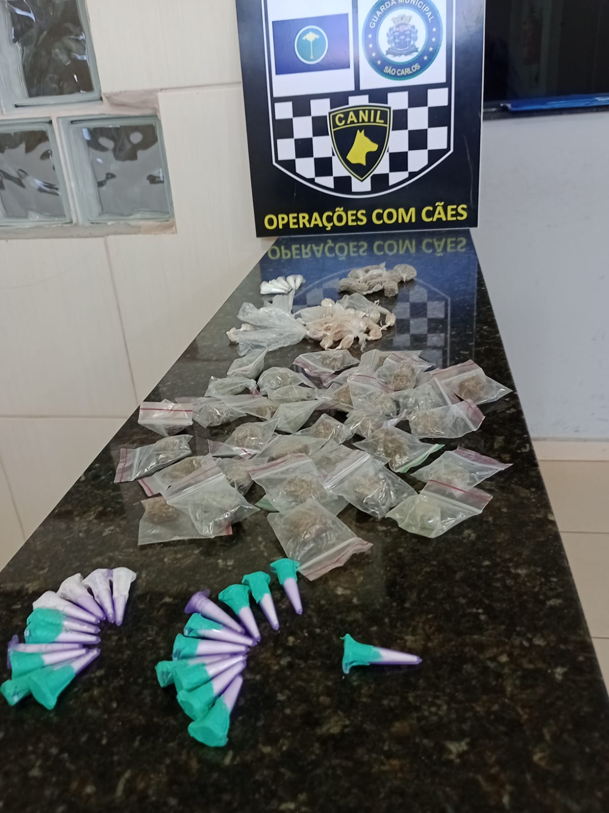 Nesta manhã de quarta-feira, 28 de junho de 2023, o Canil da Guarda Municipal apreendeu drogas na Rua Tietê, esquina com a Paranapanema, bairro Jardim Jóquei Clube, São Carlos-SP.