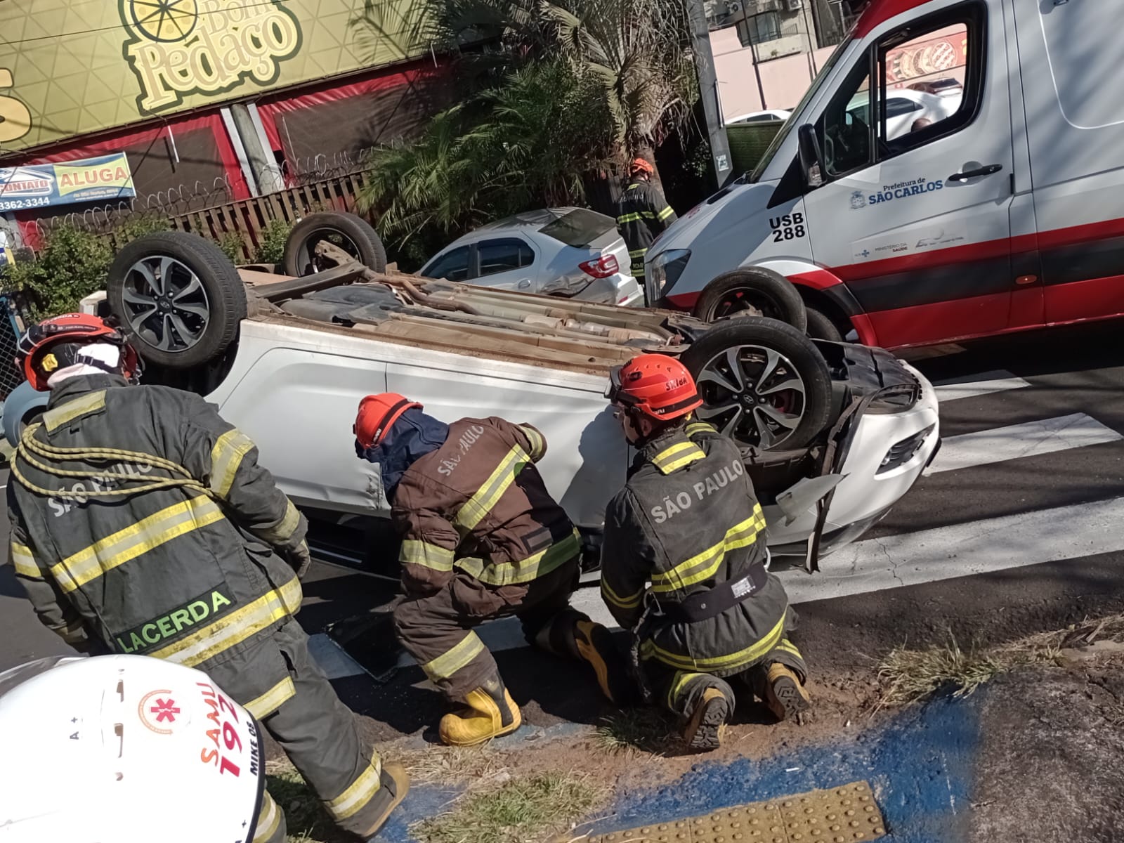 De acordo com informações, a mulher transitava com seu  HB20, no sentido USP/Terminal Rodoviário, por motivos desconhecidos, perdeu controle da direção, colidiu na traseira de um Logan, o qual estava estacionado e capotou. O SAMU e Corpo de Bombeiros foram acionados e socorreram a mulher. Aparentemente a vÃtima estava levemente ferida. A PM, a Guarda Municipal e os agentes de trânsitos estiveram no local e tomaram as medidas cabÃveis.