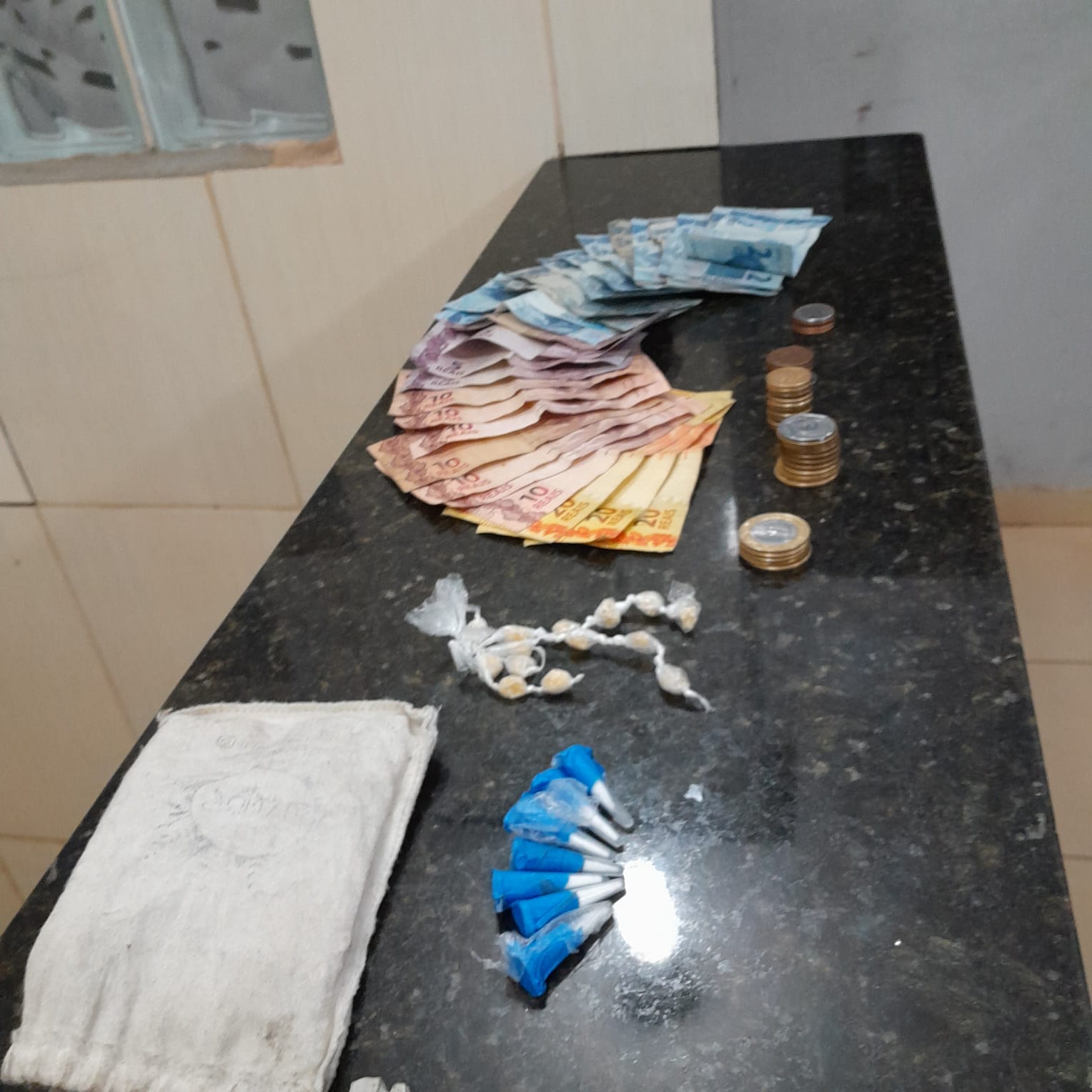 De acordo com informações, o cabo Borges e soldado Humberto estavam em patrulhamento preventivo, quando avistaram B. M.B, 29 anos. Este saiu disfarçando e escondeu atrás de um caminhão. B. M.B, o qual já puxou sete anos de pena por tráfico de drogas, foi abordado e em seu poder, foram localizados os entorpecentes. Segundo a PM, ele disse que por estar  desempregado, passou vender drogas. B. M.B, foi encaminhado para a Central de Polícia Judiciária, onde ficou à disposição da justiça.
