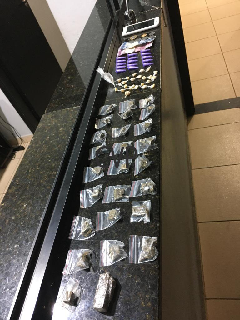 De acordo com boletim de ocorrência, o sargento Caon, cabo Vinícius e soldado Ederson estavam em patrulhamento, quando avistaram o menor mexendo em uma torre. O adolescente foi abordado e foram localizados maconha, crack, cocaína e dinheiro. O menor foi encaminhado para a Central de Polícia Judiciária e entregue para a família.
