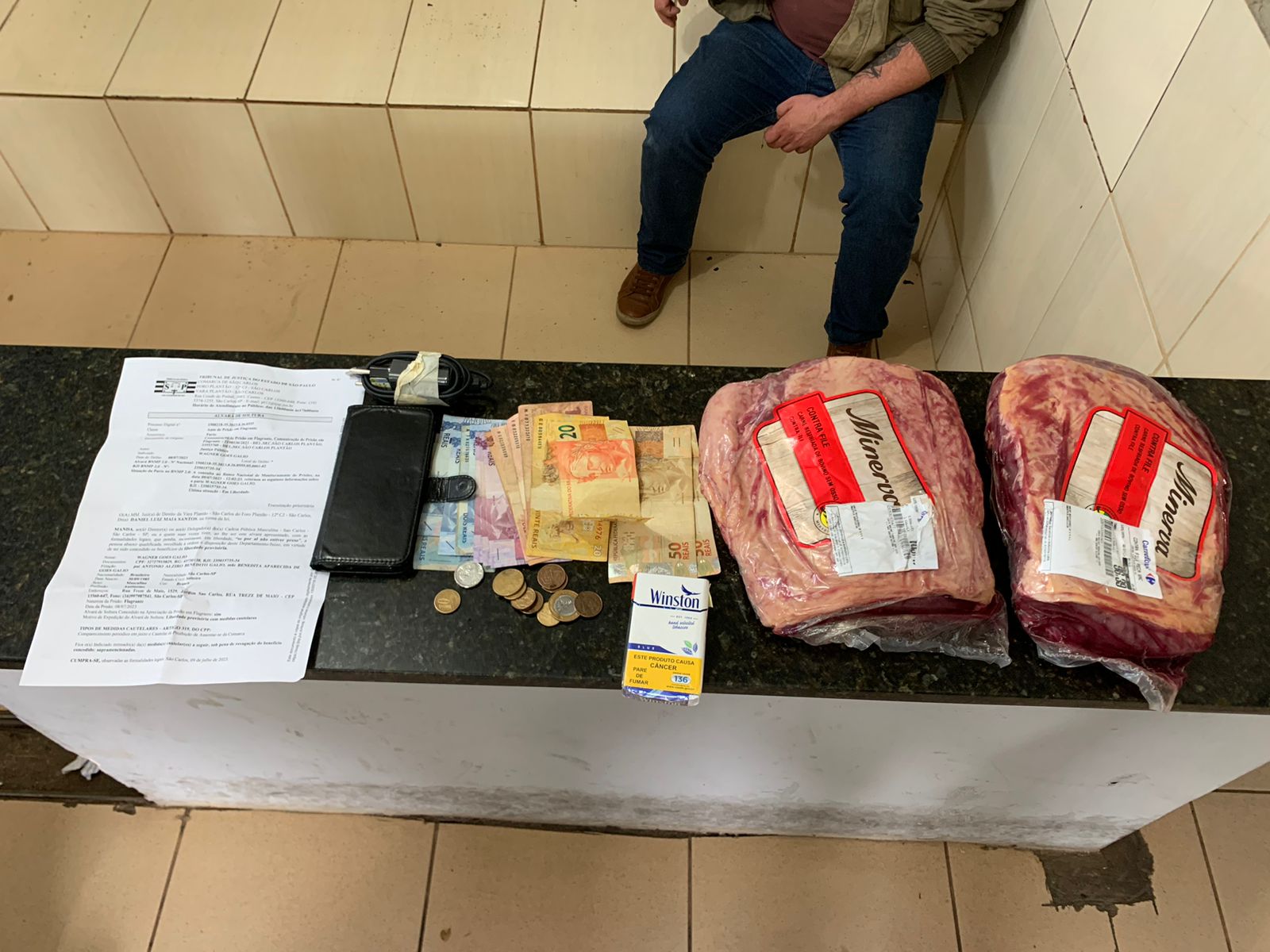 De acordo com informações, o cabo Perez e soldado Donizete estavam em patrulhamento preventivo, quando foram informados que um indivíduo, o qual havia praticado furto em uma farmácia no dia 08, havia retornado no mesmo estabelecimento.  Neste momento chegou um funcionário do supermercado Carrefour e disse que o sujeito havia acabado de furtar carne e cerveja. Os policiais saíram em patrulhamento e detiveram o meliante na Rua Alberto Mendes Junior. W.G.G, estava com as peças de carne, 8 latas de cerveja e R$ 211,00. O mesmo foi encaminhado para a Central de Polícia Judiciária, onde foi autuado em flagrante por furto e recolhido ao Centro de Triagem, de onde havia saído há poucas horas.