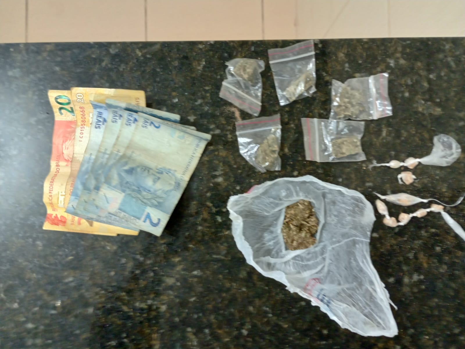 De acordco com informações, o cabo Bibiano e soldado Junqueira estavam em patrulhamento, quando abordaram um suspeito. Perto de onde ele estava, foram localizadas 6 porções de maconha, 9 pedras de crack e quarenta e seis reais. O abordado foi encaminhado para a Central de PolÃcia Judiciária, as drogas foram apreendidas e ele liberado.
