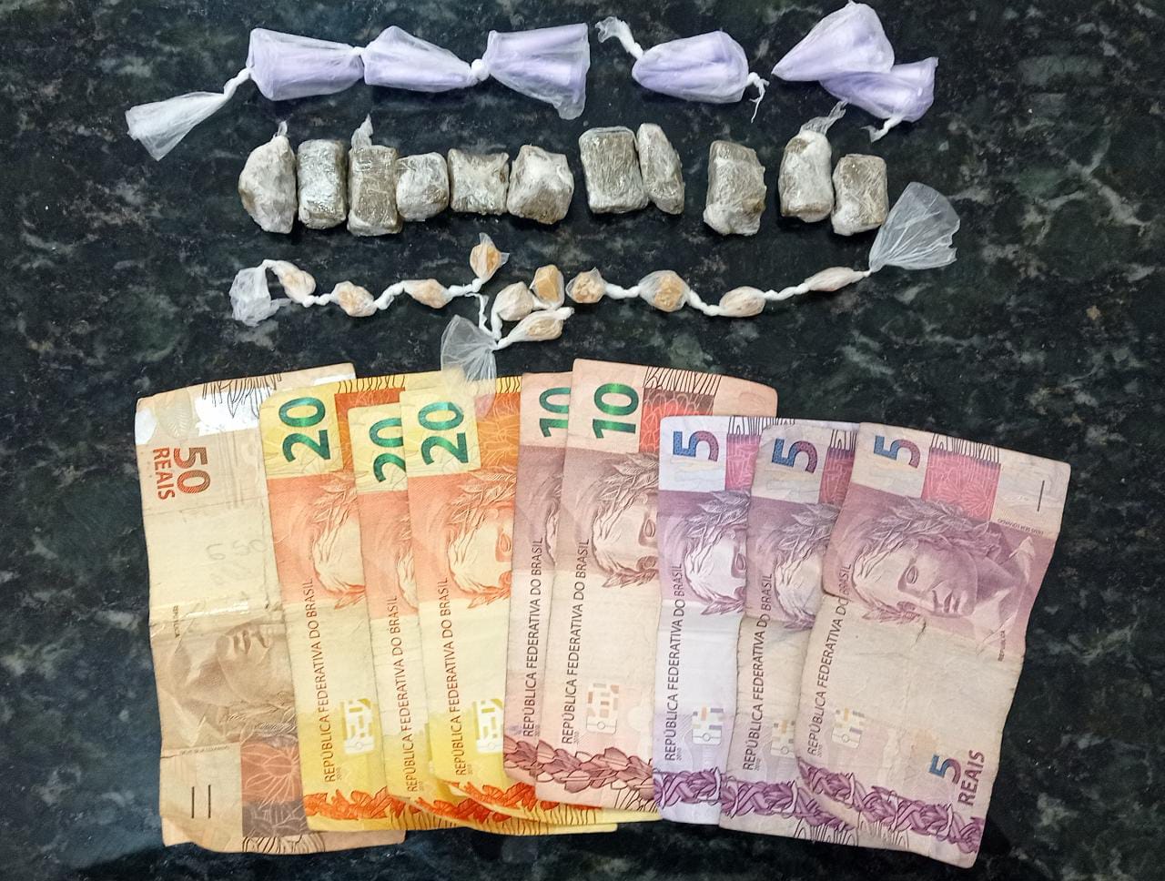 De acordo com informações, os cabos Fernando Cesar e Falaci estavam em patrulhamento preventivo pelo bairro Jd. América, quando lograram êxito em abordar um indivÃduo, o qual estava sentado em um sofá em local conhecido como ponto de tráfico de drogas. Em revista pessoal nada de ilÃcito foi encontrado com o averiguado, porém nas proximidades, foi localizada uma sacola plástica contendo 12 pinos de cocaÃna, 11 porções de maconha, 11 de crack e R$ 145,00. A ocorrência foi encaminhada para a Delegacia de PolÃcia Civil, mas até o fechamento desta matéria, a situação do meliante, não havia sido definida.