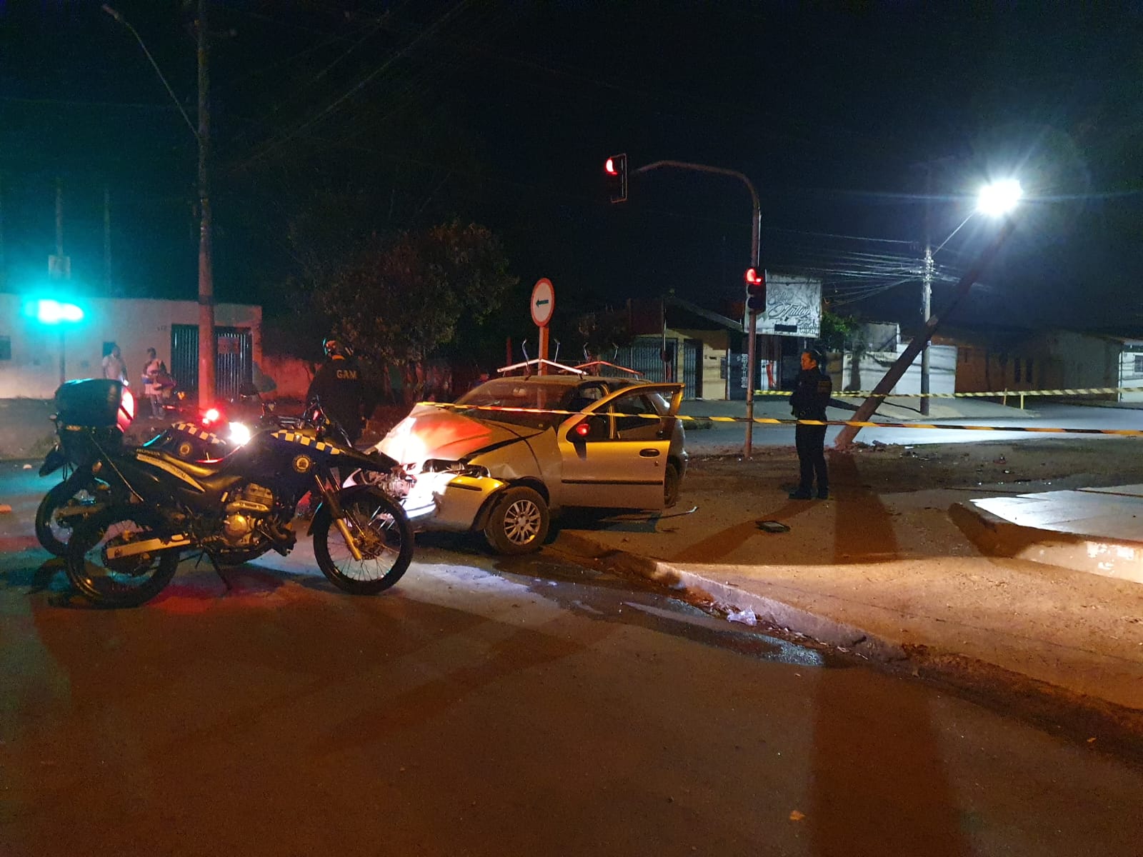 Indivíduo tenta fugir da GM e arrebenta carro em poste