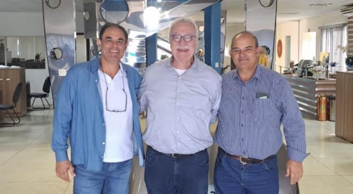 O ex-prefeito Newton Lima esteve na manhã desta quinta-feira (31) com os irmãos Omar e Silvio Casale, proprietários da Siltomac, para parabenizá-los pela premiação na 35ª edição do Prêmio Gerdau Melhores da Terra na categoria “Novidade Expointer Agricultura de Escala”.