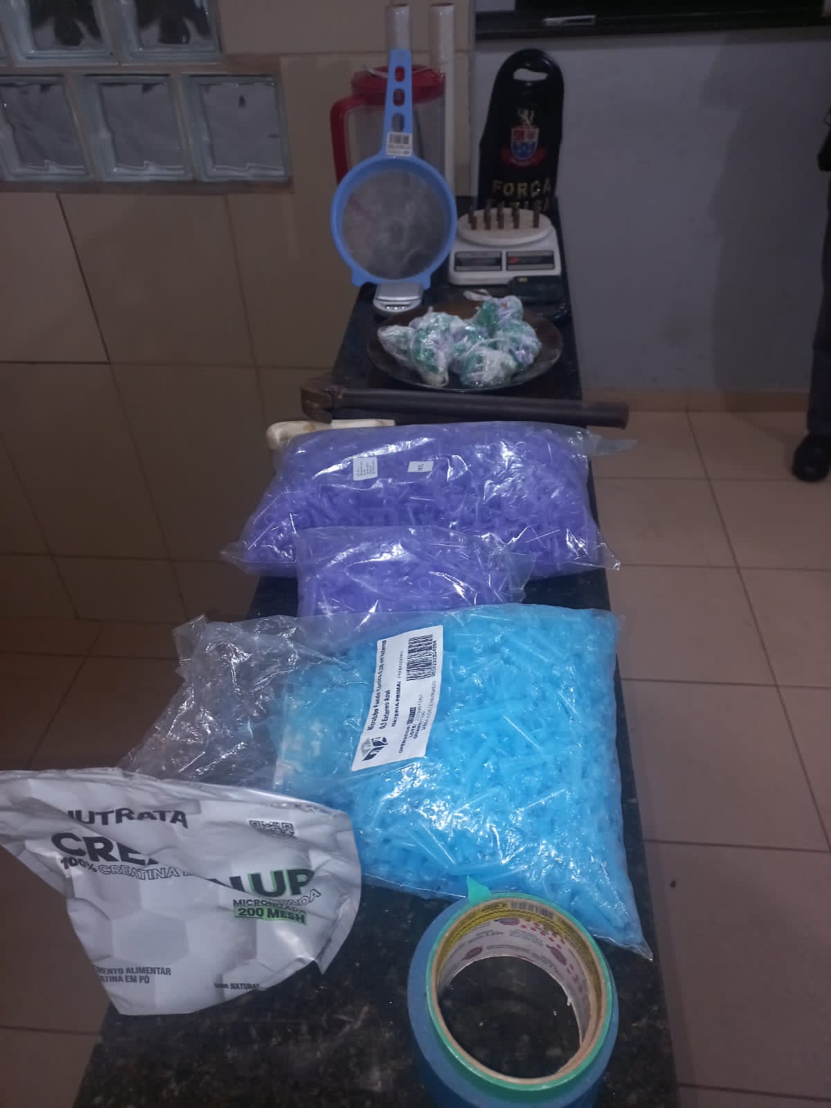 De acordo com boletim de ocorrência, a PM já recebeu várias denúncias, que um indivÃduo usa a casa no fundo do terreno para embalar drogas. Os policiais militares, sargento Wanderson, cabos Bortolozzo, Jefferson e VinÃcius passavam defronte ao local, quando um sujeito correu para dentro do imóvel e fugiu pelos fundos. No corredor do imóvel, a PM encontrou pinos de cocaÃna. Na casa dos fundos do terreno, os policiais encontraram 180 pinos de cocaÃna, 1 prato, 3 balanças, 2 rolos de papel filme, um martelo, uma faca, um saco com pó branco, 3 sacos com pinos vazios, 4 munições de calibre 32 intactas,  5 de calibre 7.65, 4 estojos deflagrados, entre outros. Os objetos foram encaminhados para a Central de PolÃcia Judiciária, onde foram apreendidos. A DISE ( Delegacia de Investigações Sobre Entorpecentes), deverá investigar o suposto dono das drogas.