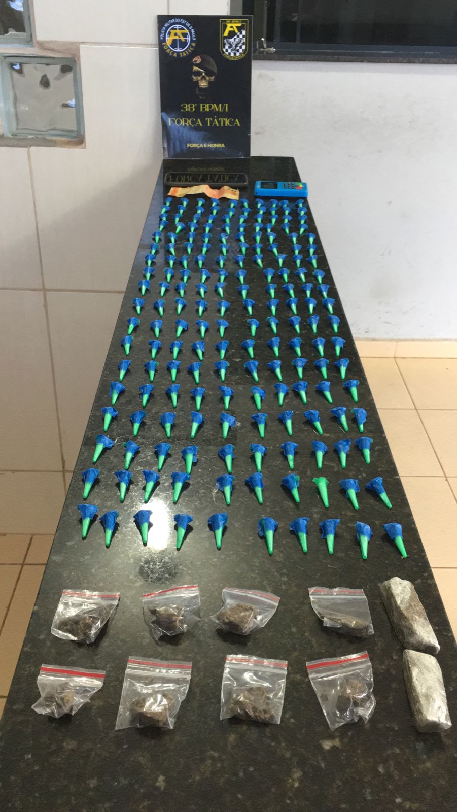 De acordo com informações, o sargento Caon, sargento Parente e cabo Moreira estavam em patrulhamento momento que avistaram N.P.S.S, de 21 anos. O sujeito estava em um local conhecido como ponto de drogas. Os policiais realizaram a abordagem e com o averiguado foram localizados 30 pinos de cocaína e R$ 20,00. O detido confessou que estava vendendo drogas desde as 22h00 da data anterior. Nas proximidades onde ele estava, foram localizados mais entorpecentes e uma máquina de cartão. O indivíduo foi encaminhado para a Central de Polícia Judiciária, autuado em flagrante por tráfico de drogas e recolhido ao Centro de Triagem de São Carlos.