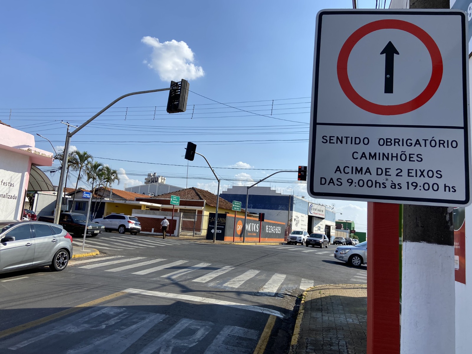 Caminhoneiros devem ficar atentos e respeitar a nova sinalização A Administração Municipal vem estudando ações e políticas públicas para viabilizar melhorias no trânsito da cidade e, consequentemente, no fluxo do tráfego de veículos, demanda que se tornou uma das prioridades dessa gestão. A Prefeitura de Ibaté, por meio de seu Departamento Municipal de Trânsito, deu início à implantação de placas que vão regulamentar a circulação de caminhões na área central da cidade. Entre 09h e 19h, os veículos acima de dois eixos estão proibidos de circular no polígono compreendido na Avenida São João entre as ruas Eduardo Apréia e Floriano Peixoto. A Guarda Municipal será a responsável pelas ações de fiscalização e controle do tráfego. De acordo com o diretor Municipal do Departamento de Trânsito, Tenente Coronel Nelson Brito, tal proibição mostra-se necessária, uma vez que, as passagens constantes de veículos de grande porte no trecho, inevitavelmente atrapalham o trânsito. “O objetivo destas mudanças é de disciplinar a circulação dos veículos, prevenir acidentes e garantir condições de fluidez na cidade, minimizando os impactos negativos pela disputa de espaço entre automóveis, caminhões e veículos do transporte coletivo”, explicou Brito. As placas indicam a restrição e também orientação aos motoristas.