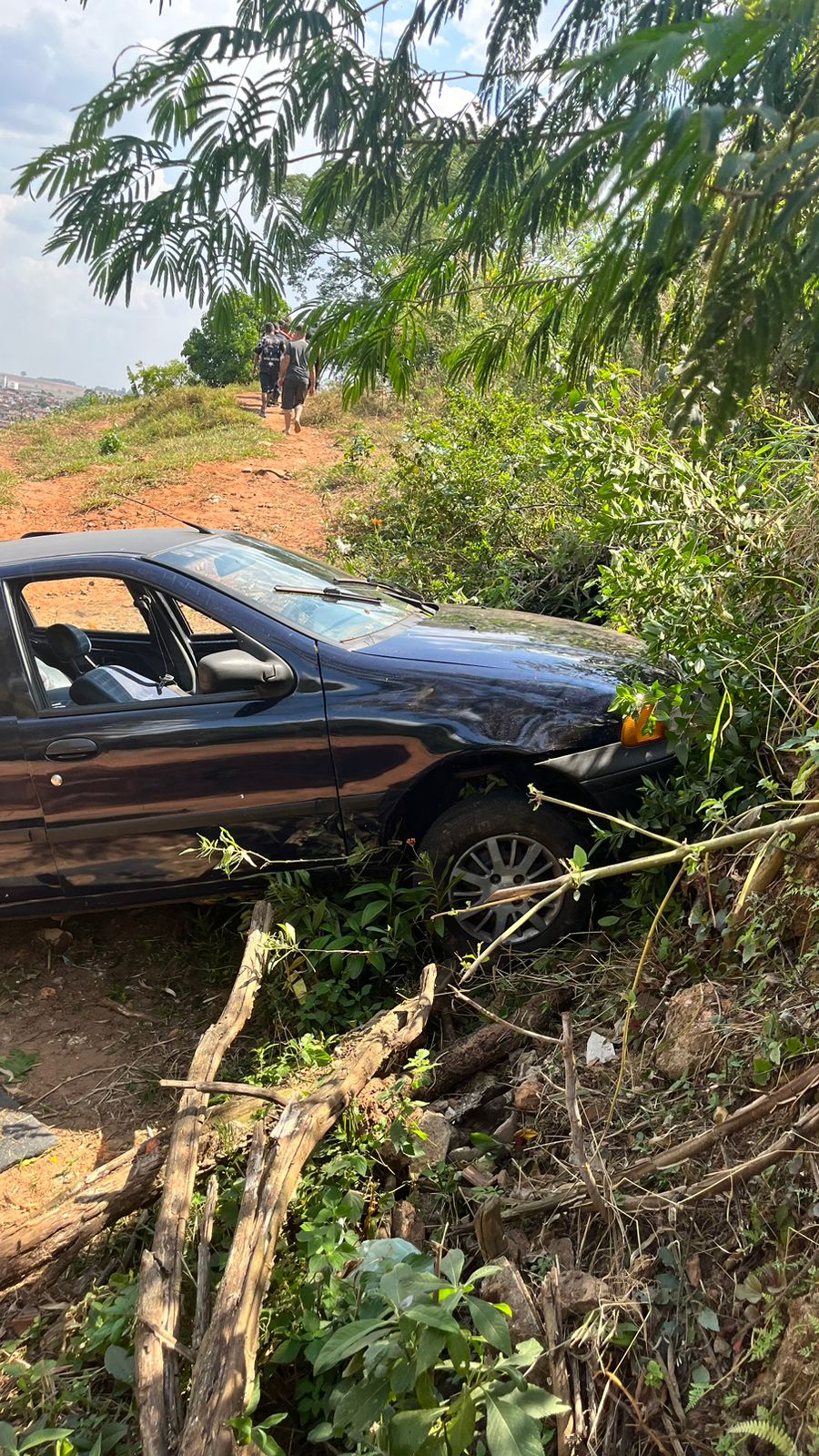 Cinco pessoas escaparam da morte nesta tarde de sábado, 23 de setembro de 2023, após um veÃculo Pálio em que elas estavam despencar de uma ribanceira na Rua Hércules Sachi, bairro Vila Conceição, São Carlos-SP.