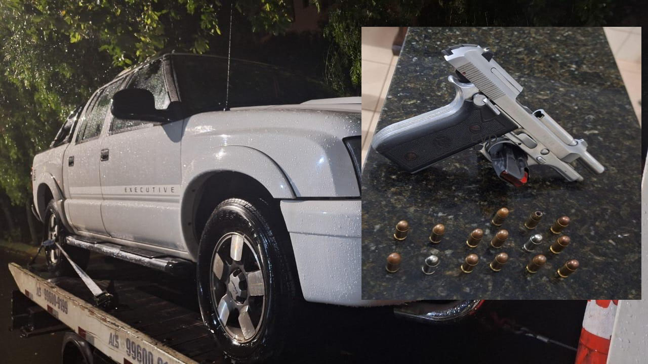 Segundo consta, a PM recebeu denúncia, que uma caminhonete roubada, estaria escondida na garagem de uma casa na Rua Doze, do referido bairro. Os policiais, cabos Rodrigues e Gomes foram para o local e o fato foi confirmado. O morador disse que um conhecido dele, havia pedido para deixar o veÃculo no local, mas que desconhecia a procedência. Ele informou onde o tal conhecido morava. Várias equipes foram para o endereço passado ( bairro Cidade Aracy) e em um bar defronte à residência tinha um indivÃduo com um volume na cintura. Este foi abordado e constatado que era uma pistola calibre 380, a qual estava com numeração suprimida. A ocorrência foi encaminhada para a Central de PolÃcia Judiciária, onde C.P.S, 53 anos, foi autuado em flagrante e recolhido ao Centro de Triagem. A arma encontrada em seu poder foi apreendida. As investigações deverão serem feitas pela DIG ( Delegacia de Investigações Gerais).