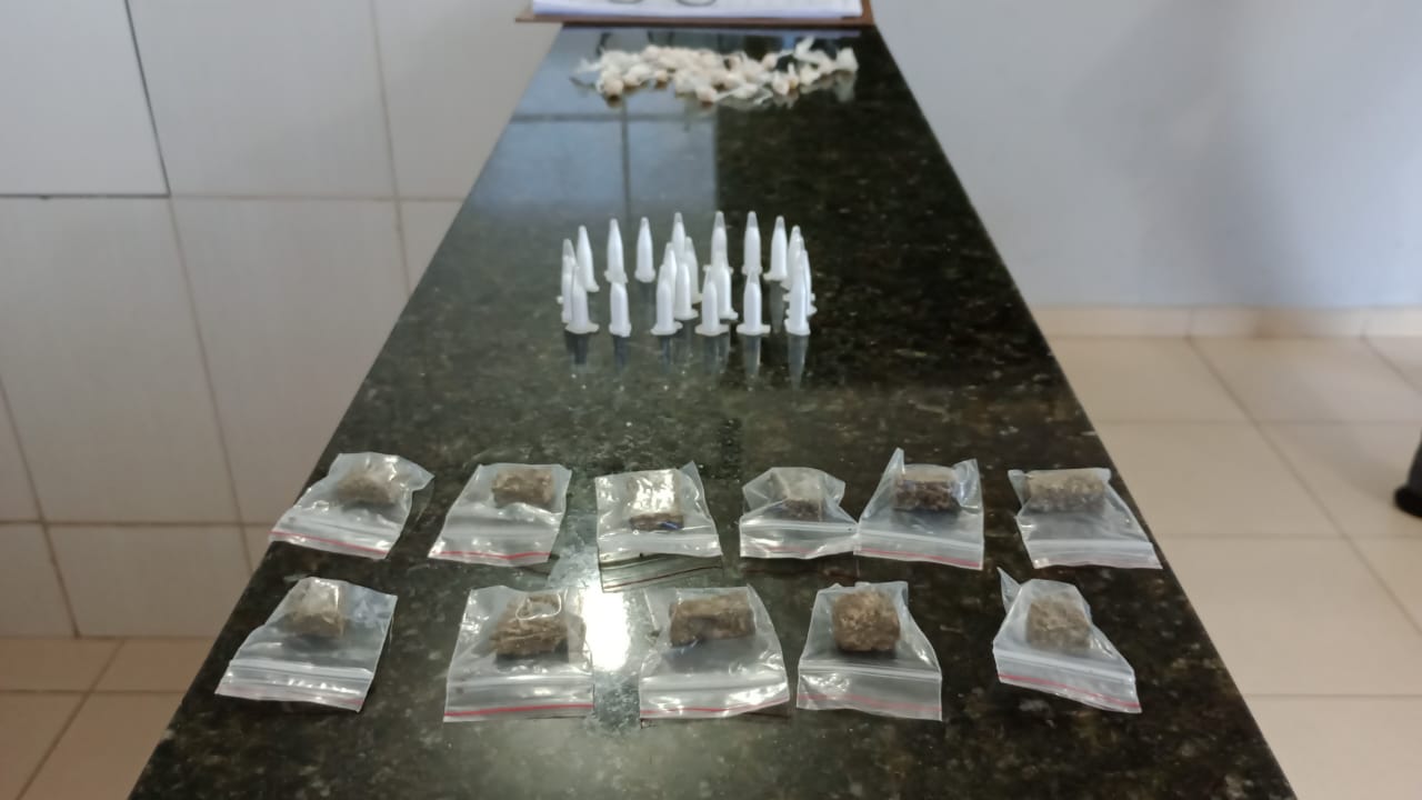 Segundo informações, os policiais cabo Fregolente e soldado Moraes estavam em patrulhamento, momento que o menor saiu correndo e dispensou 11 invólucros de  maconha, 23 pinos de cocaÃna e 41 pedras de crack. Ele foi detido e encaminhado para a Central de PolÃcia Judiciária, onde ficou foi entregue para a tia.