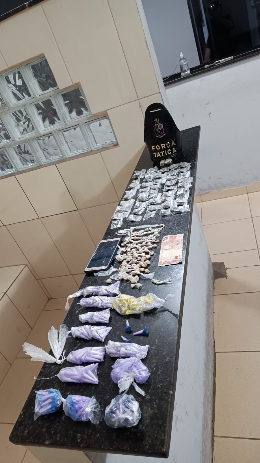 De acordo com informações, eram por volta das 20h30, o sargento Wanderson, cabo  Jefferson, soldados Weliton e  Ederson estavam em  patrulhamento de Força Tática, quando avistaram um indivÃduo agachado mexendo em uma tubulação de água pluvial , rente a calçada. Ao visualizar a equipe, levantou e começou a andar em sentido contrário a viatura. Feito a abordagem e nada de ilÃcito foi encontrado em seu poder. Ao ser indagado, informou que estava na prática do tráfico. Ele disse que a droga que venderia no seu turno estava dentro do cano onde estava agachado.