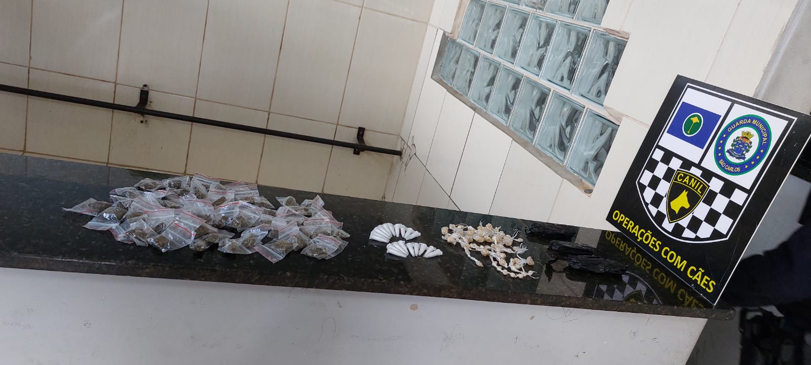 O Canil da Guarda Municipal apreendeu drogas nesta manhã de terça-feira, 21 de novembro de 2023, na Av. João Dagnone , bairro  Santa Angelina, São Carlos-SP.