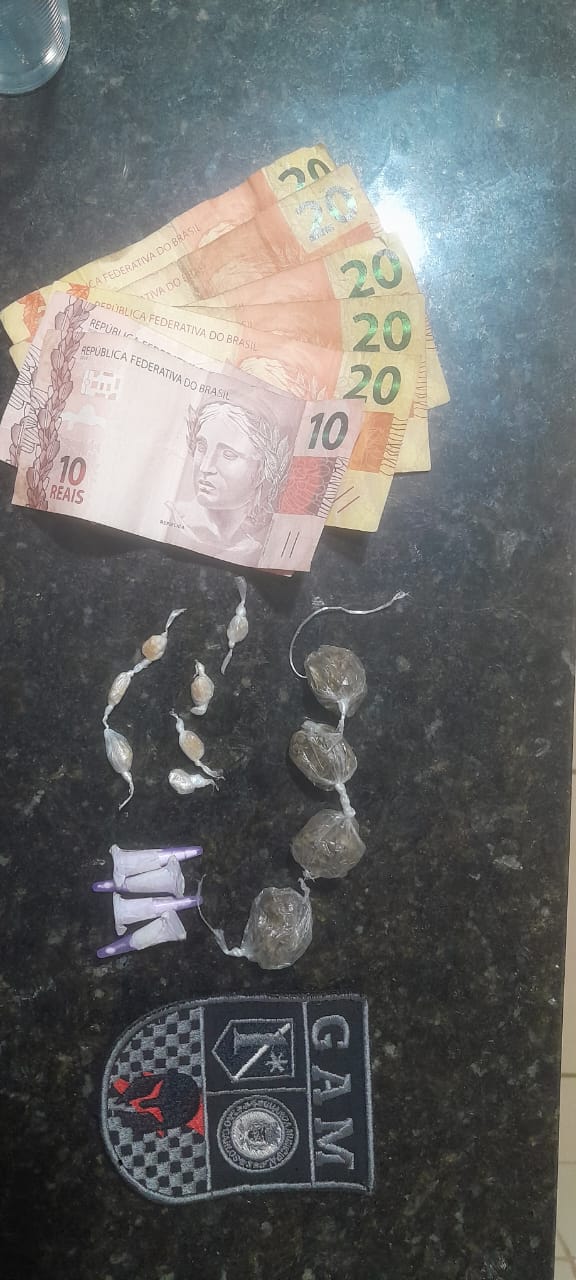 De acordo com informações, a GM estava em patrulhamento preventivo, quando avistou o adolescente de 17 anos. O menor  saiu andando no sentido contrário das motos e olhando para trás. Ele foi abordado e em seu poder foi localizada uma sacola contendo 4 porções de maconha, 7 pedras de crack, 4 pinos de cocaÃna e uma cédula de R$20,00. No bolso frontal direito,  foram  localizados R$ 100,00. O adolescente foi encaminhado para a Central de PolÃcia Judiciária, onde ficou à disposição da famÃlia.