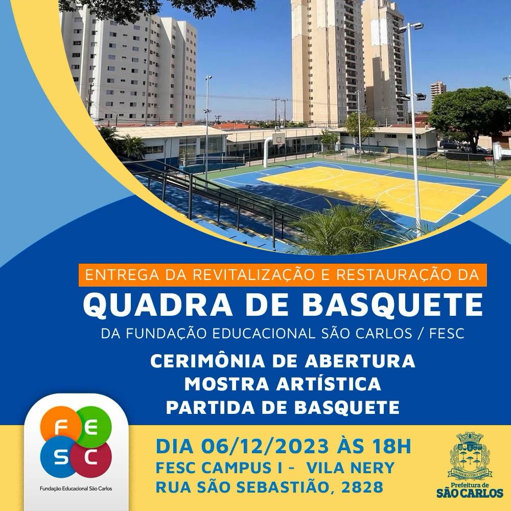 A Fundação Educacional São Carlos - FESC realizará uma cerimônia especial para marcar a entrega da revitalização e restauração da quadra de basquete. O evento promete ser uma celebração emocionante, com uma cerimônia de abertura, mostra artística e uma partida de basquete.