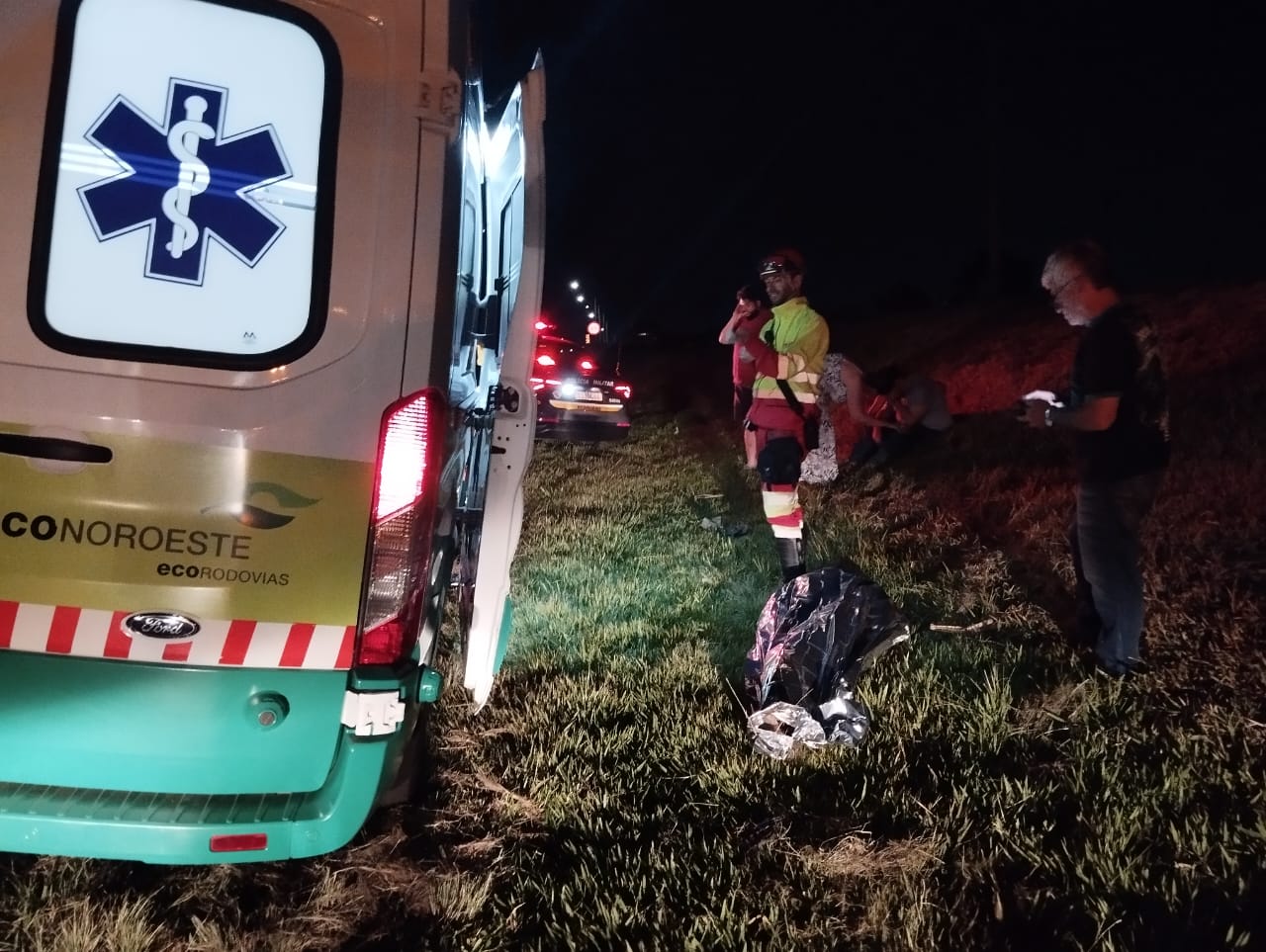 De acordo com informações, a vÃtima aparenta pessoa em situação de rua e foi atropelada por um veÃculo Palio Weekend. A concessionária ECONOROESTE, a qual administra este trecho da SP-310, foi para o local e o médico constatou o óbito. A PolÃcia Militar Rodoviária preservou o local até a chegada da PolÃcia CientÃfica. O delegado, Dr. Miguel Capobianco Junior e o investigador Edson estiveram no local e junto ao copo do falecido, foi encontrado um certidão de nascimento e também uma carteira de vacinação, ambos em nome de Eder LuÃs de Paula Cabral. A PolÃcia Ainda não sabe se a pessoa morta é mesmo Eder. O corpo foi encaminhado para o IML de São Carlos. A ocorrência foi apresentada na Central de PolÃcia Judiciária.