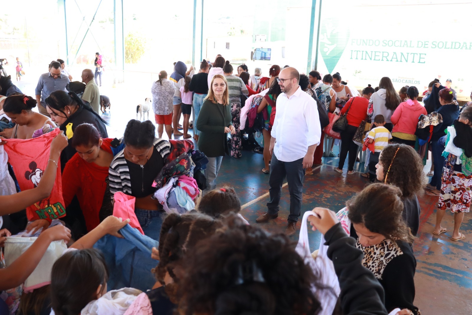 O Fundo Social de Solidariedade de São Carlos retomou a programação 2024 do “Caminhão Itinerante” na manhã da última sexta-feira (26/01) pelo bairro Jardim Gonzaga. O programa tem o objetivo de levar para as famílias as doações que são arrecadadas durante todo o ano, especialmente durante a campanha do agasalho, visando o atendimento direto à população de bairros carentes da cidade. A primeira-dama e presidente do Fundo Social de Solidariedade, Rosária Mazzini, explica que esse projeto foi iniciado em 2017 e que percorre vários bairros da cidade e a zona rural. “Hoje estamos aqui no CEMEAR (Centro Municipal de Educação e Artes), no Jardim Gonzaga, muitas pessoas não têm condições de ir até a sede do Fundo Social, então nós trazemos as doações, são mais de 2.500 peças, entre roupas e sapatos para adultos e crianças, além de roupas de cama e banho e cada pessoa pode levar até 15 peças”. Rosária Mazzini lembra, ainda, que o Fundo Social sobrevive de doações, e pede para as pessoas continuarem a doar para que mais famílias possam ser beneficiadas. Para a moradora do bairro, Milena Batista, muitas pessoas não têm como comprar roupas. ”É um item necessário, aqui eu consegui roupas para as minhas duas filhas, para mim e para o meu bebê”. Celina de Oliveira aproveitou e levou roupas para ela e para o marido. “Todas as roupas são boas, estamos saindo todos contentes, agradeço a Prefeitura e ao prefeito por esse projeto”. Netto Donato, secretário de Governo, acompanhou a presidente do FSS na retomada do programa. “É sensacional ver as pessoas felizes porque estão conseguindo levar roupas boas para toda a família. Apenas em uma manhã mais de 300 pessoas passaram aqui para escolher alguma peça de roupa ou par de sapato”, conta Netto. O Fundo Social fica localizado na rua Francisco Maricondi, nº 375, na Vila Marina, e recebe doações o ano todo de roupas, sapatos, agasalhos, roupas de cama, banho, itens de higiene, fraldas descartáveis e alimentos não perecíveis. Após o carnaval o caminhão retoma o cronograma de visita aos bairros. Maiores informações podem ser obtidas pelo telefone (16) 3372-0865.