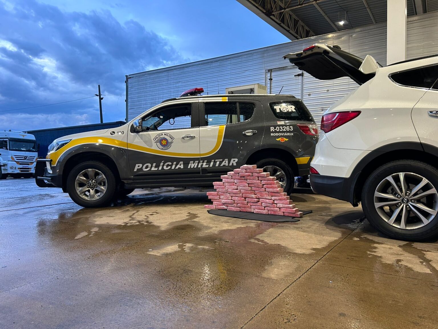 No final desta tarde de quarta-feira (31-01-2024), por volta das 17h39, durante a Operação Impacto, a equipe do Tático Ostensivo Rodoviário (TOR) abordou um veÃculo Hyundai Santa Fe na Rodovia Washington LuÃs, km 203,000, pista sul, em Itirapina (SP). e dentro foi localizada uma grande quantidade de drogas. Durante a abordagem, a condutora, ao perceber a presença policial, realizou uma mudança brusca de faixa, tentando se camuflar entre os veÃculos de grande porte.