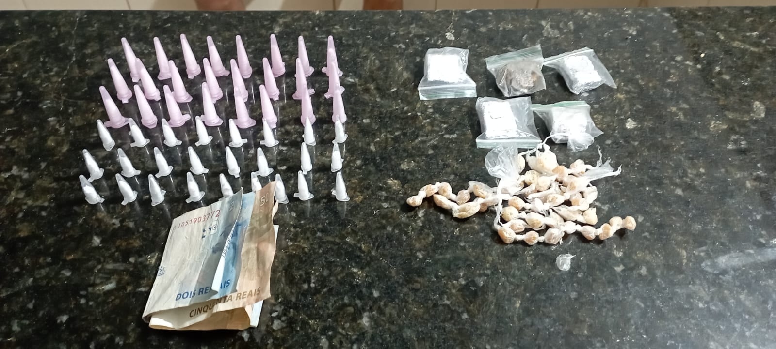 De acordo com informações, J.V.A.S.M, de 26 anos, estava carregando uma pequena bolsa, quando viu os policiais jogou o objeto ao solo. Neste momento foi detido.  Dentro da bolsa foram localizados 46 pedras de crack, 49 porções de maconha, 5 pinos de cocaÃna e R$55,05. Ele foi encaminhado para a Central de PolÃcia Judiciária, autuado em flagrante por tráfico de drogas e recolhido ao Centro de Triagem de São Carlos.