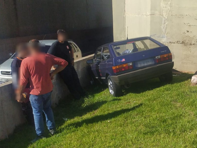 Nesta manhã de segunda-feira, 19 de fevereiro de 2024, um veículo Gol colidiu no muro de proteção debaixo do Pontilhão da Praça Itália, São Carlos-SP.