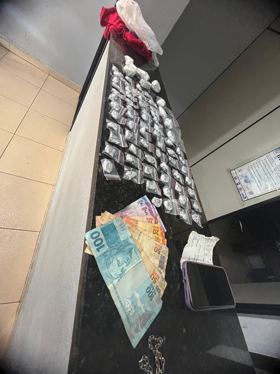De acordo com informações, a PM e o Canil do BAEP estavam em operação pelo CDHU, no condomÃnio 4, foi avistado um indivÃduo com uma sacola nas mãos. Este ao avistar as viaturas tentou fugir e jogou a sacola no telhado do estacionamento do bloco dois. C.H.O, de 25 anos foi abordado e em revista pessoal foram encontrados em seu poder R$ 262,00 e um celular. Dentro da sacola foram localizadas drogas. O averiguado foi encaminhado para a Central de PolÃcia Judiciária, autuado em flagrante por tráfico de drogas e recolhido ao Centro de Triagem de São Carlos.