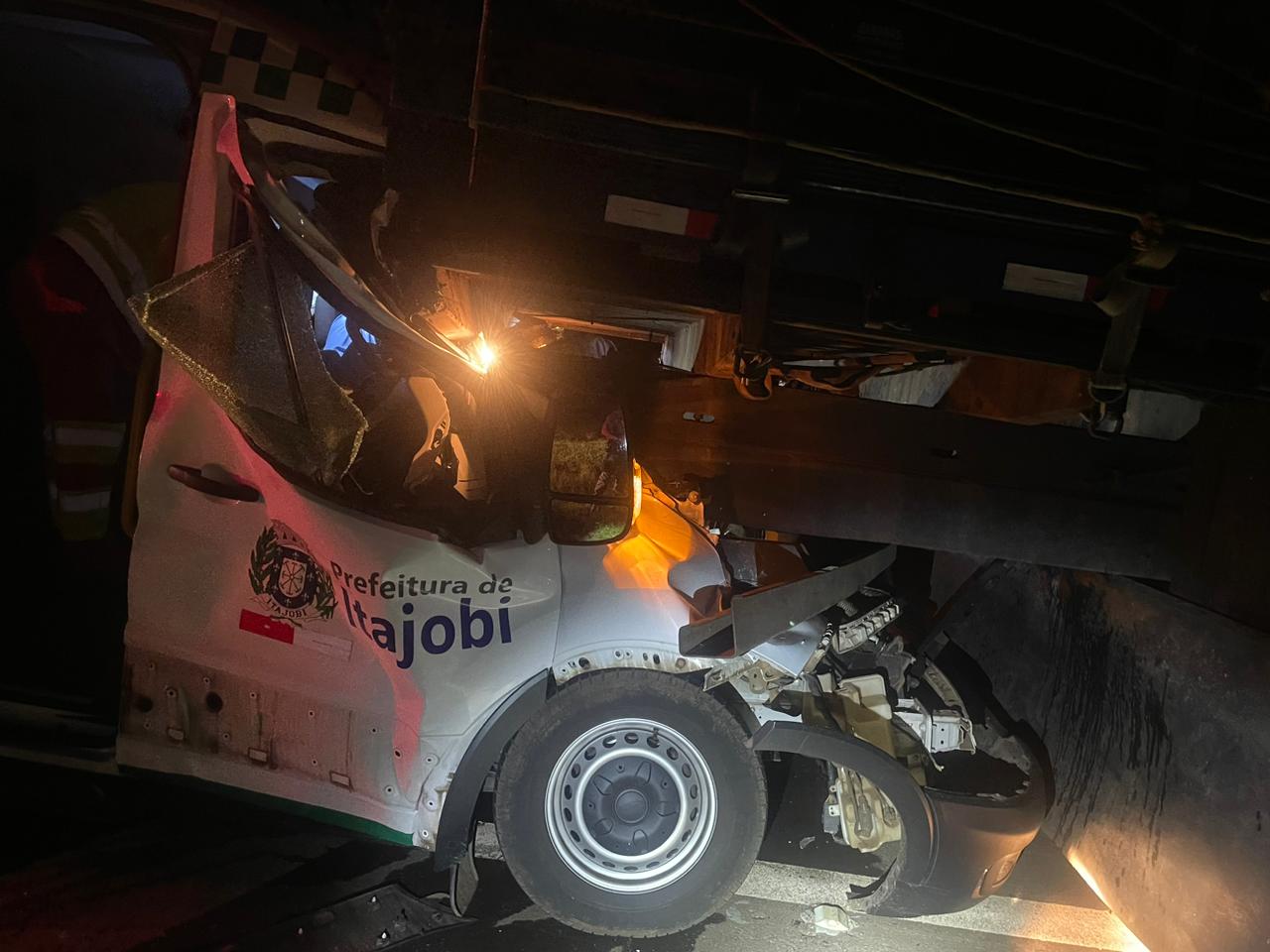 Nesta madrugada de terça-feira, 12 de março de 2024, o motorista de uma ambulância ficou preso nas ferragens ao colidir na traseira de um caminhão no km 301 da rodovia Washington Luís, região de Matão-SP.