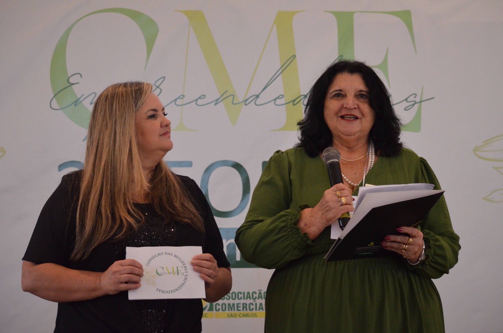A presidente da Associação Comercial e Industrial de São Carlos (ACISC), Ivone Zanquim, participou nesta segunda-feira, 27, do 2º Fórum da Mulher Empreendedora de São Carlos, realizado pelo Conselho da Mulher Empreendedora (CME) e apoio total da ACISC. O evento, que aconteceu no The Palace, em São Carlos, e reuniu dezenas de mulheres empreendedoras, teve como tema central: “Conectando Forças”. Em seu discurso de abertura, Ivone destacou que o encontro foi mais que uma reunião de mentes brilhantes. “É um tributo à força e à inovação das mulheres que transformam sonhos em realidade e impulsionam o progresso econômico e social da nossa cidade”, afirmou. Primeira mulher presidente da ACISC, em 93 anos de fundação, Ivone ressaltou que as mulheres são um pilar fundamental da economia. “Nossas iniciativas não apenas geram empregos e renda, mas também promovem mudanças sociais significativas, impactando positivamente comunidades inteiras. Temos visto um crescimento constante no número de empreendedoras, e São Carlos tem se destacado como um polo de inovação e empreendedorismo feminino”, disse. O Fórum contou com três painéis: o primeiro sobre “Vendas a Arte de fazer Dinheiro”, que contou com a coordenação de Tatiane Tenório e a participação de Bárbara Bono (Folk Store), Janaina Alves (Via Comfy) e Ellen Sahid (Gaia Pousada); o segundo foi o "Conectando Forças", com a coordenação de Evelin Nomi e as participações de Luciana Almeida (Fundadora Nupen), Thalyse Santana (Mestre em Psicologia) e Katia Helena (O Despertar da Felina); e o terceiro, "Cases de Sucesso", que teve a coordenação de Ariadne Freitas e as participações de Angela Martins (Jabu), Débora Daniela (Art's) e Maria Aires (Maria Aires Imóveis). Além dos painéis, o evento contou com a palestra “Mulher Moderna no Mundo Empresarial”, que foi ministrada por Douglas Marangoni dos Santos. Feliz com o resultado do 2º Fórum da Mulher Empreendedora, a presidente do CME, Juliana Tomase, agradeceu o apoio da ACISC e a participação das mulheres, destacando que foi um evento marcante. "Em nome da equipe organizadora, gostaríamos de expressar nossa mais profunda gratidão a todos os participantes, colaboradores e apoiadores do nosso segundo Fórum de Empreendedoras, em especial, o apoio da ACISC, através da nossa presidente Ivone Zanquim. Tivemos uma participação muito maior de mulheres, em relação ao ano passado, mostrando que as mulheres estão cada vez mais engajadas no empreendedorismo”, finaliza. Além de Ivone Zanquim, participaram do Fórum as representantes da nova Diretoria ACISC, Fernanda Trindade (CareShop), Lídia Mendes Lima (OMO Lavanderia), Esther Casemiro (Óticas Santa Luzia) e Alessandra de Alencar Paulillo (Mr. Kitsch). O Conselho da Mulher Empreendedora é vinculado à ACISC e tem por finalidade, dentre outras, unir e promover o fortalecimento da mulher empresária e empreendedora de São Carlos, assim como participar e promover eventos de cunho empresarial, sociocultural e filantrópico. (Assessoria de Imprensa: ACISC)