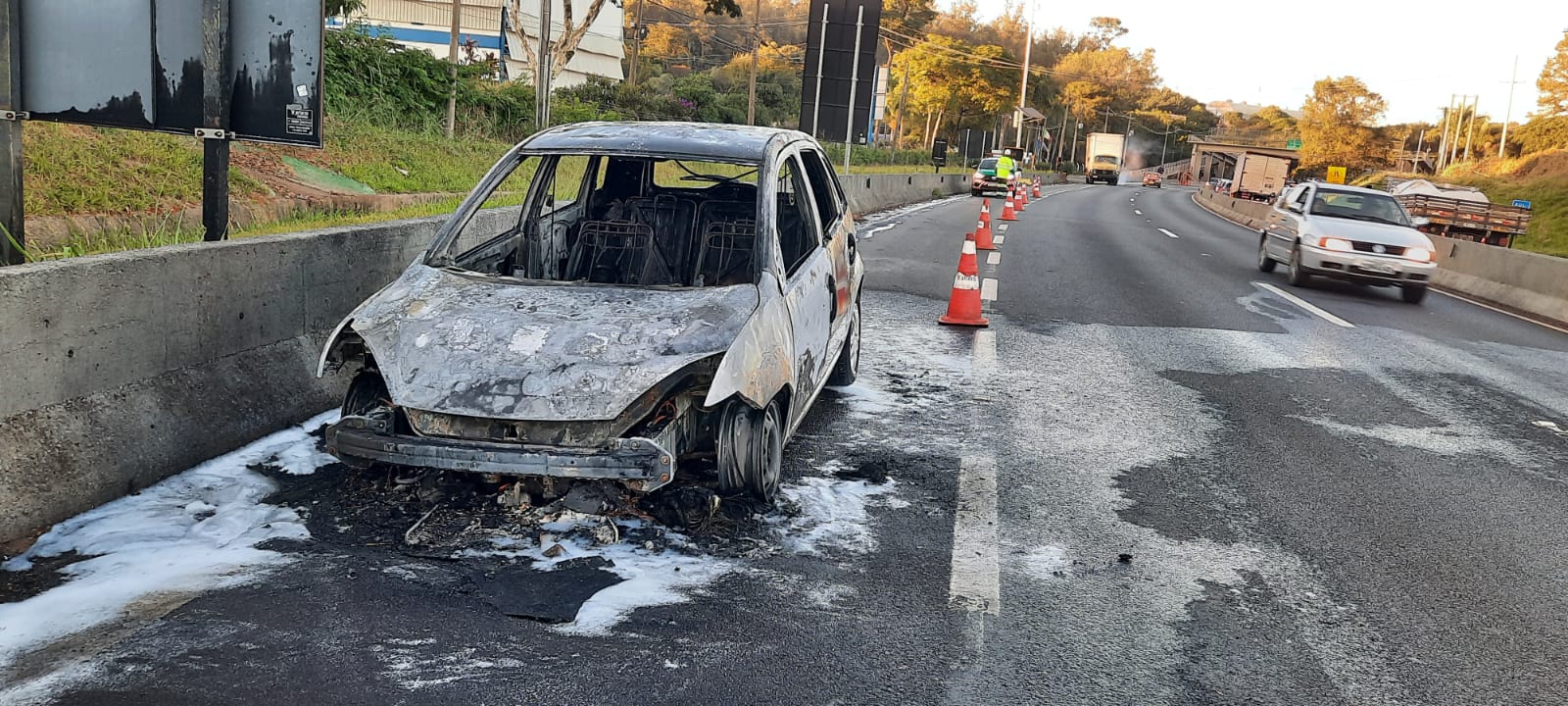 Por volta das 6h30 desta sexta-feira, 14 de junho de 2024, um veÃculo Fiesta pegou fogo no km 236 da rodovia Engenheiro Tales Lorena Peixoto Junior ( SP-318), quase defronte a Papelão São Carlos, São Carlos-SP.