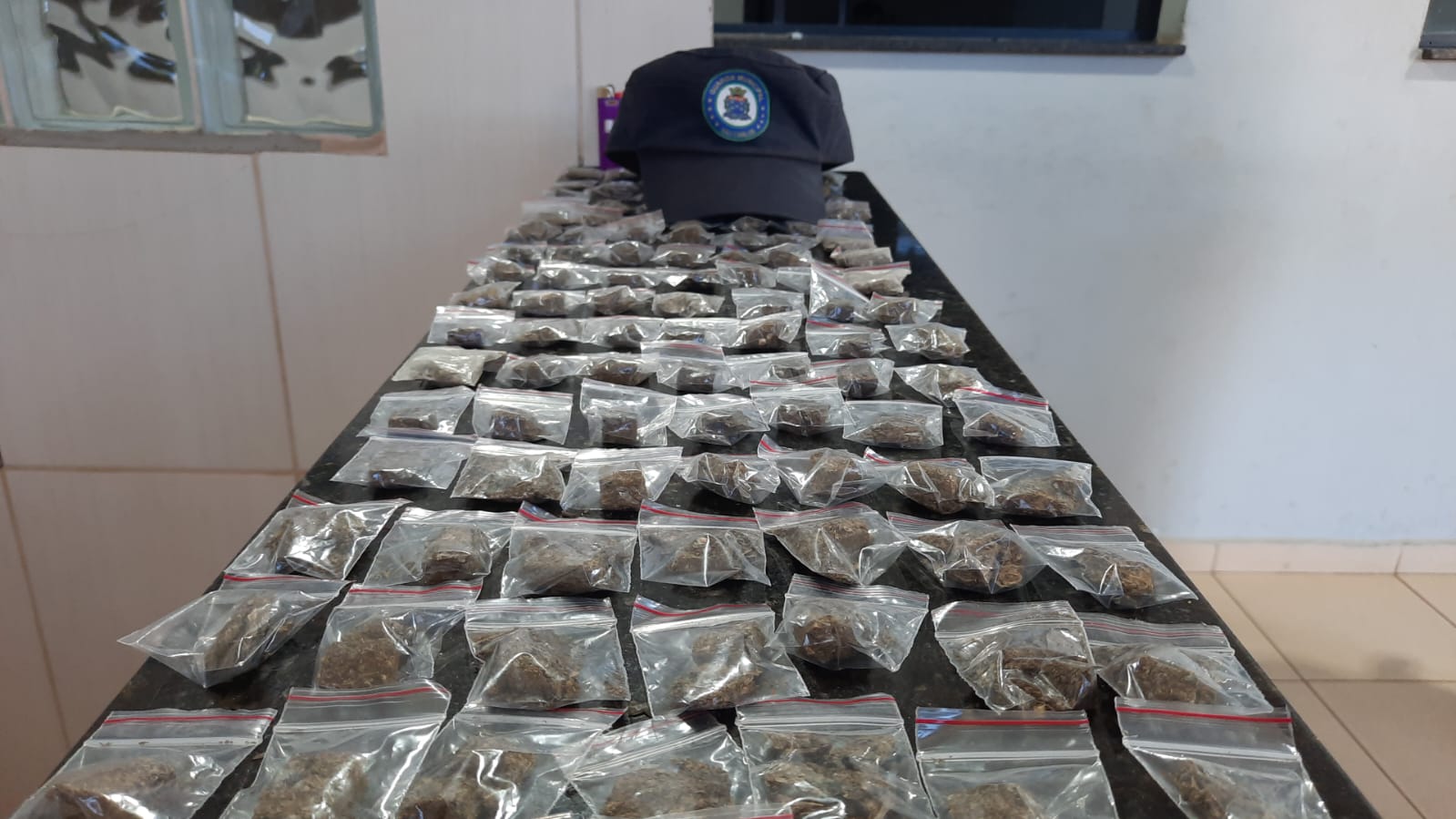 De acordo com informações, a GM tem recebido diversas denúncias, a respeito  de tráfico de drogas ocorrendo no local. Em patrulhamento, a equipe avistou um menor mexendo em algo em uma área de mata, próxima a uma praça. O menor foi abordado e foram localizados 178 invólucros de maconha, 80 pinos de cocaína, 102 pedras de crack,  um isqueiro  e quatro reais. O adolescente disse que havia acabado de assumir o ponto de drogas e por isso estava contando o entorpecente. O menor foi encaminhado para a Central de Polícia Judiciária, onde ficou à disposição da família.