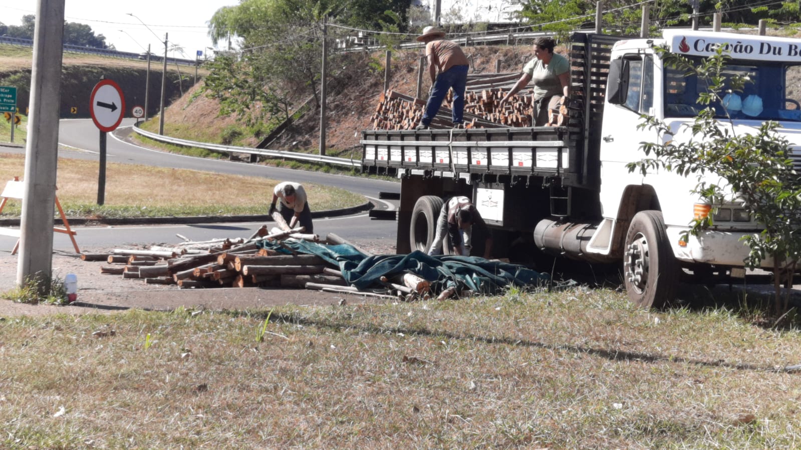 Uma carga de lenha, a qual havia saÃdo de Itirapina-SP, com destino a uma empresa em São Carlos-SP, caiu nesta manhã de quinta-feira, 20 de junho de 2024, na rotatória próxima a Universidade Federal de São Carlos-SP.