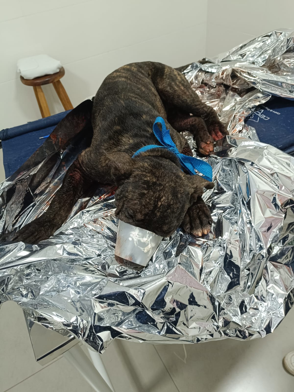 Pitbull é salvo pela GM e Corpo de Bombeiros