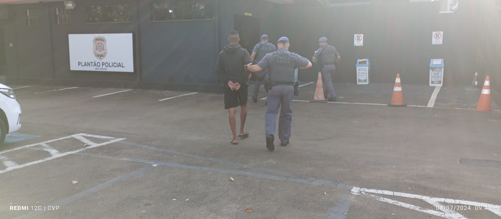 Um indivíduo de 19 anos, suspeito de estar traficando, foi detido pela Força Tática nesta manhã de segunda-feira, 8 de julho de 2024, na Rua Cantor João Paulo, bairro Cidade Aracy I, São Carlos-SP.