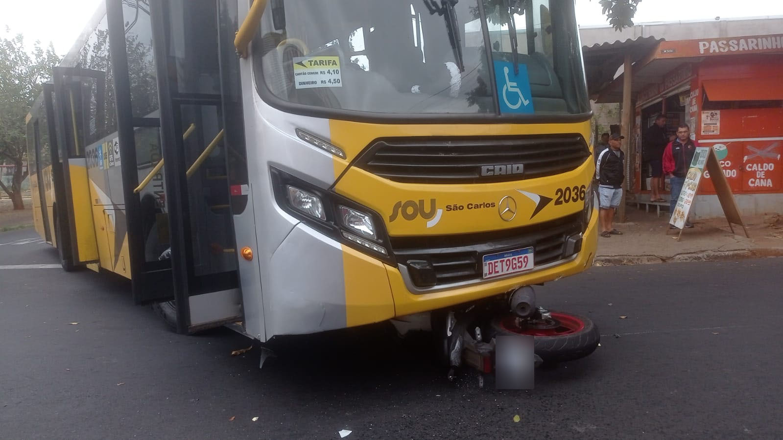 Uma câmera de segurança gravou, o acidente. M.S.G, de 2o anos, condutor da moto sofreu uma queda, foi lançado para a frente e a moto foi parar debaixo do coletivo. O ônibus estava fazendo a conversão e o motociclista já havia sofrido a queda antes. Com ferimentos leves, ele foi socorrido pelo SAMU e encaminhado para a Santa Casa. A PM tomou todas as medidas cabíveis.