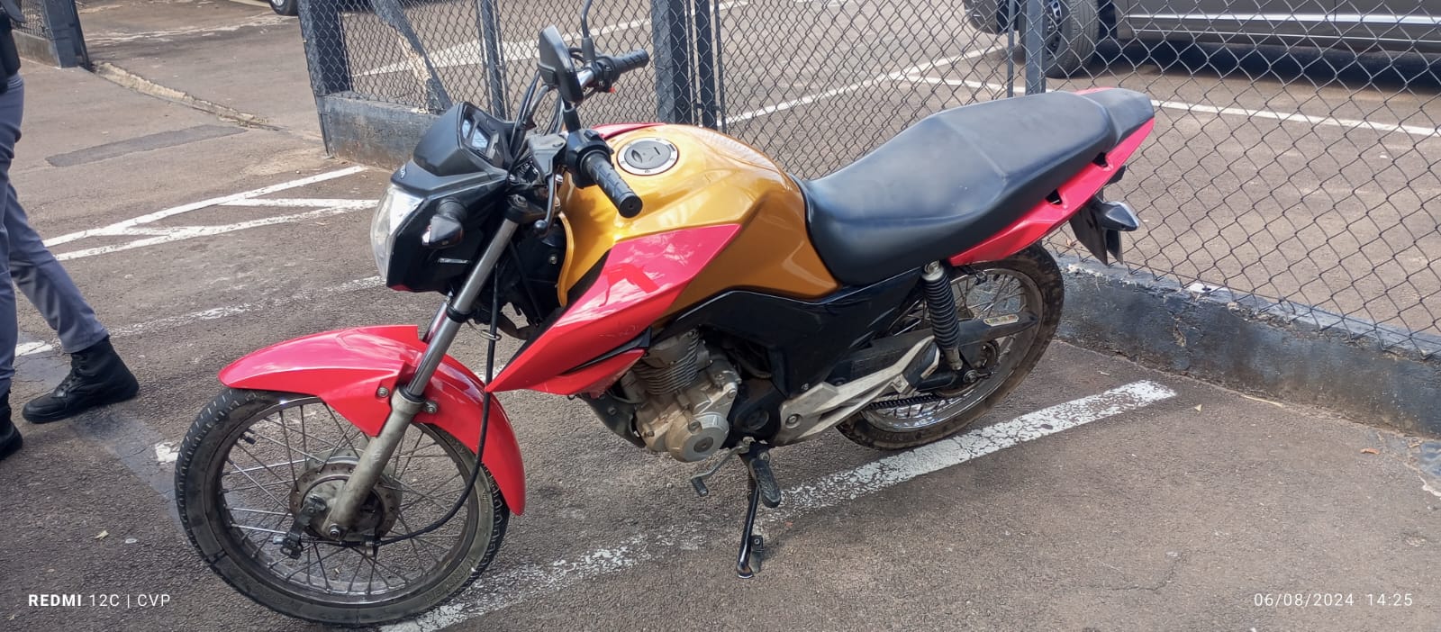 Policiais do Rádio Patrulhamento apreenderam uma moto nesta tarde de terça-feira, 6 de agosto de 2024, e detiveram um sujeito. A detenção ocorreu na  Rua Cantor João Paulo, bairro Vida Nova São Carlos, São Carlos-SP. A motociclista estava com queixa de furto e com as numerações suprimidas.