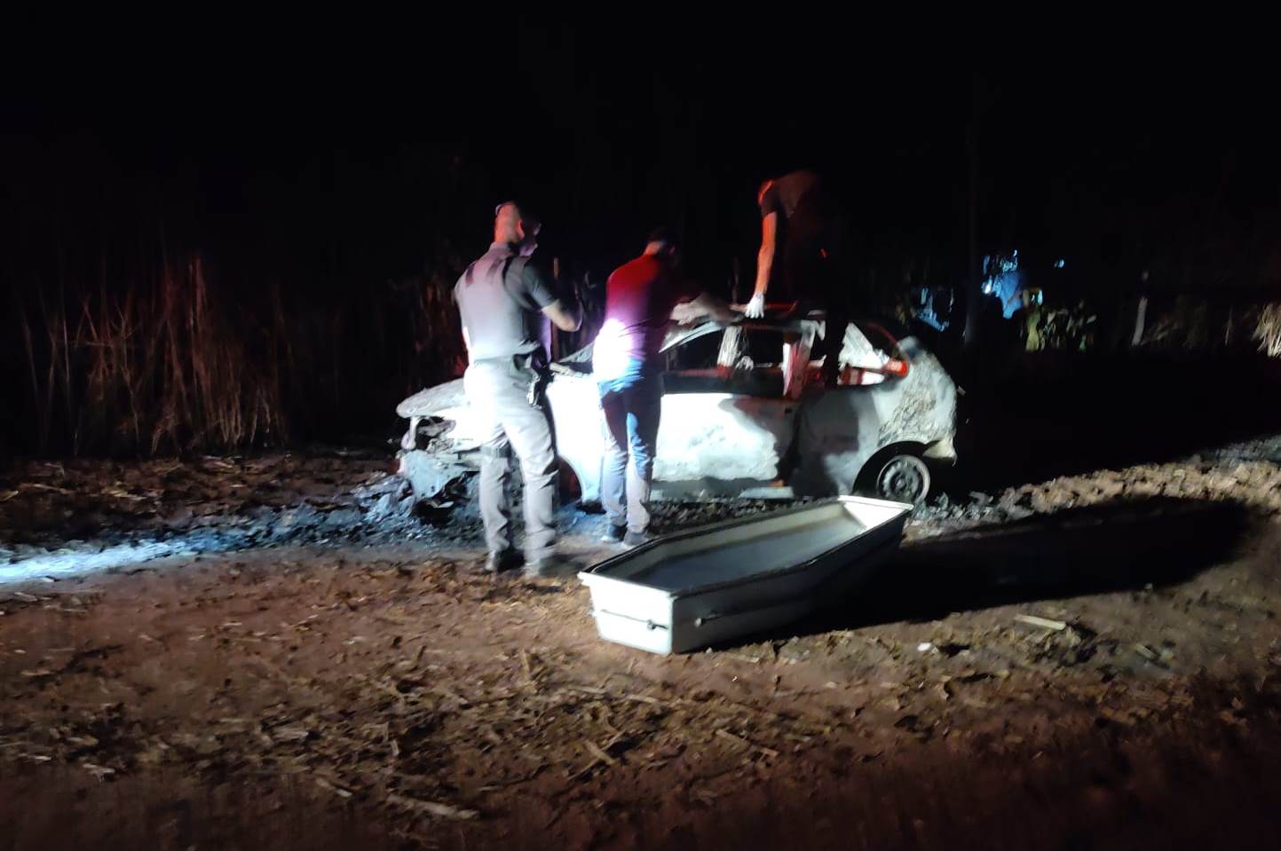O fogo foi contido, mas o veÃculo já estava completamente destruÃdo. Dentro do carro foi encontrado um corpo totalmente carbonizado.