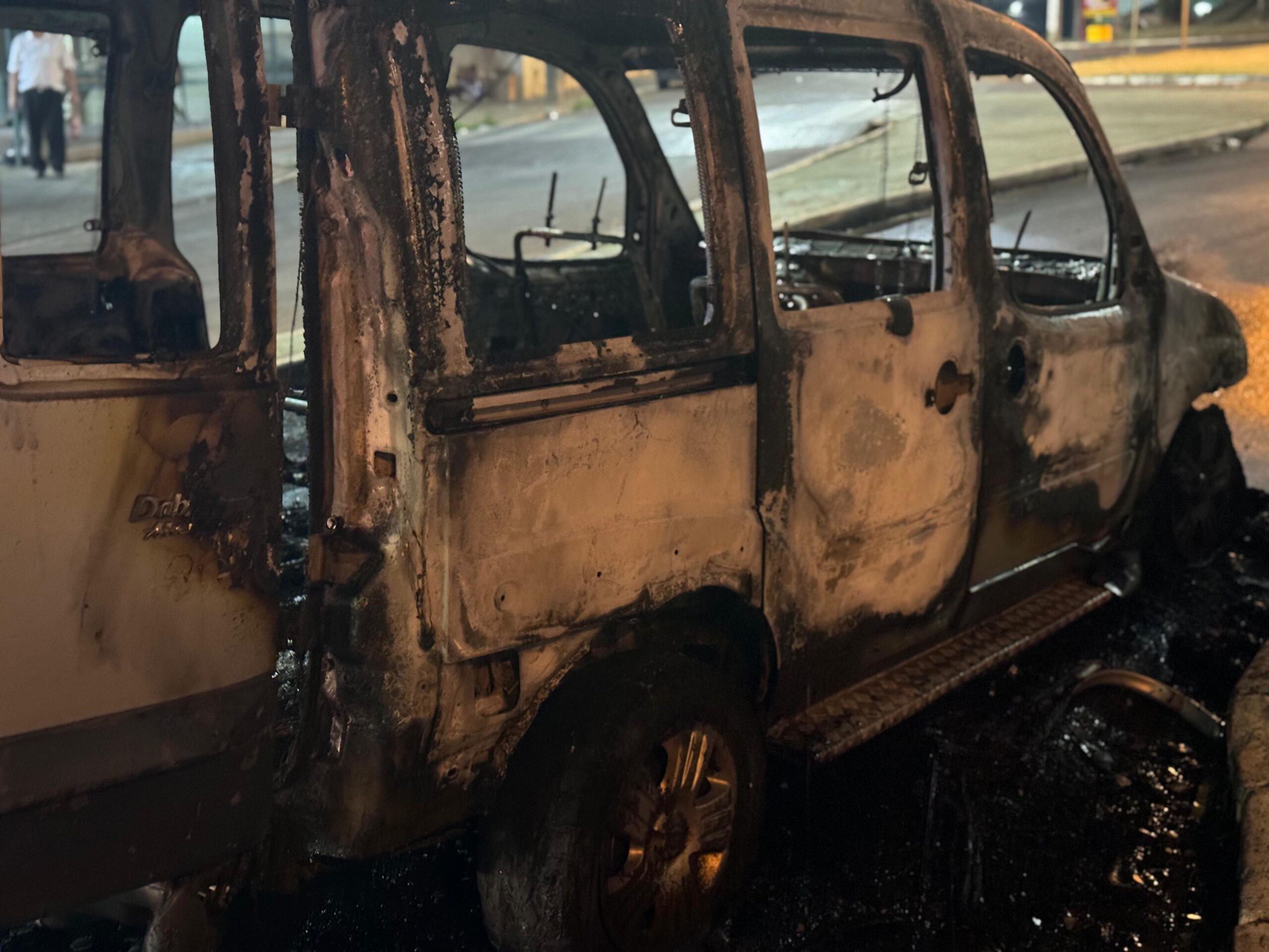 Um comerciante teve seu Fiat Doblo devorado por um incêndio nesta noite de terça-feira, 20-08-2024, na Rua Lourenço Inocentinni, bairro Vila Nery, São Carlos-SP.