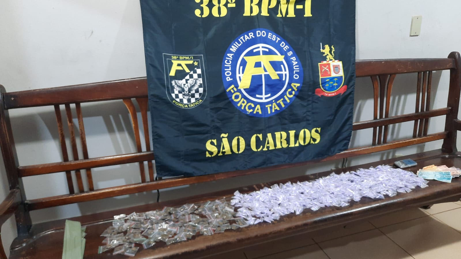 De acordo com informações, as equipes receberam denúncia e foram para o local . Quando o sargento Strozze e os cabos Tiago e Prado chegaram ao local, o suspeito teria jogado uma sacola pela janela. Imediatamente ele foi detido e confessou que guardava a droga, mas não quis dizer para quem estaria guardando o entorpecente. A ocorrência foi encaminhada para a Central de PolÃcia Judiciária, ponde o detido foi assistido pela a advogada, Dra. Isabella Victoria Feloni. J. V. P, foi autuado em flagrante pelo delegado, Dr. Gilberto de Aquino e recolhido ao Centro de Triagem de São Carlos. No total foram apreendidos R$548,00, 756 pinos de cocaÃna e 112 porções de maconha.