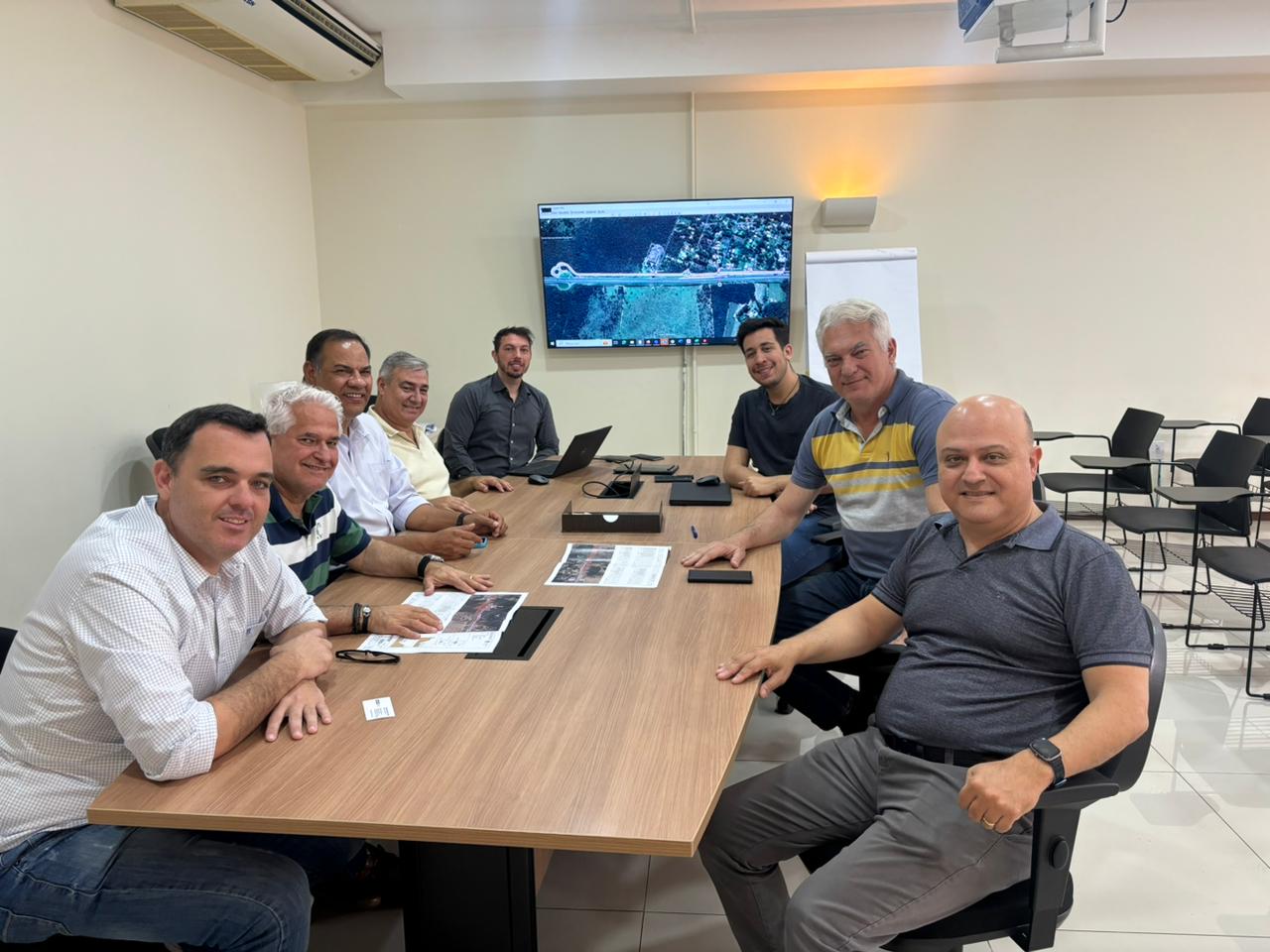 O presidente da Câmara Municipal, vereador Marquinho Amaral, acompanhado do secretário de Transporte e Trânsito, Cesinha Maragno, participou nesta sexta-feira (06) de uma reunião em São Carlos com o superintendente de engenharia da Concessionária EIXO – SP, Graciano Argento de Amorim, com o assistente de faixa de domínio, Lucas da Cunha Pereira e com o assessor de relações institucionais, Marcos Mauricio Chitolina de Góes, ocasião que foi debatida as alterações no projeto para implantação de dispositivo de acesso na rodovia Washington Luís (SP 310) no bairro Recreio Campestre. A reunião contou ainda com as presenças do secretário municipal adjunto da citada secretaria, Sebastião Carlos Batista e do diretor de Trânsito Paulo Luciano.