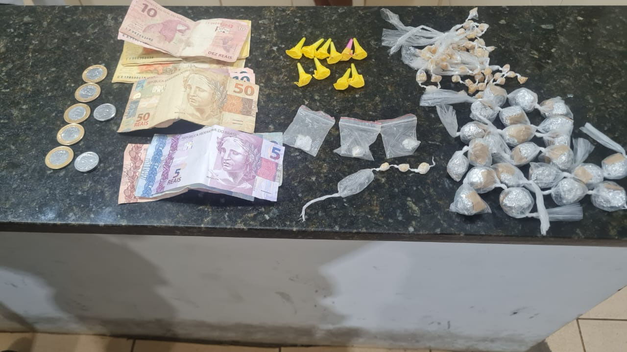 De acordo com informações, os policiais militares da ROCAM, cabos Oliveira, Amaral e Soares, estavam em patrulhamento pelo local conhecido como ponto de tráfico de drogas, momento que avistaram B.L.G, de 20 anos. O jovem foi abordado e em seu poder foi encontrada uma pochete com drogas e dinheiro. O averiguado, o qual quando menor de idade, era envolvido com tráfico, assumiu que estava na traficância e mostrou onde estava guardando o restante dos entorpecentes. No total foram apreendidas 65 pedras de crack, 23 porções de maconha, 10 pinos de cocaÃna, 3 porções de haxixe e R$ 232,00. O detido foi encaminhado para a Central de PolÃcia Judiciária, autuado em flagrante pelo delegado, Dr. Adriano Callsen Alexandrino e recolhido ao Centro de Triagem de São Carlos. Nesta quinta-feira, 26 de setembro de 2024, ele deverá passar por Audiência de Custódia, se for mantido preso, será encaminhado para um presÃdio da região.