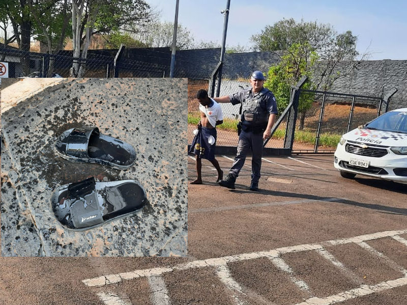De acordo com informações, o estudante estava a caminho da escola, quando foi abordado por D.S. M,  31 anos, o qual roubou a bicicleta e o par de chinelos.  A PM foi acionada. O  cabo Perez e a soldado Tatiana detiveram o meliante. Ele foi encaminhado par a Central de PolÃcia Judiciária, onde foi autuado em flagrante por roubo e recolhido ao Centro de Triagem de São Carlos.