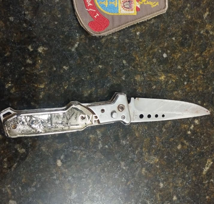 A PM saiu em diligência e deteve a mulher em uma adega. Com ela foi encontrado um canivete. Ao ser indagada, ela disse que teria visto o marido passando as mãos no bumbum da filha de 3 anos. Ao questioná-lo, ele teria batido a cabeça da mulher na parede. Ela disse que ele portava uma faca. Ela se apoderou de um canivete e desferiu o golpe contra o companheiro. A ocorrência foi encaminhada para a Central de Polícia Judiciária, onde a mulher foi qualificada e liberada.
