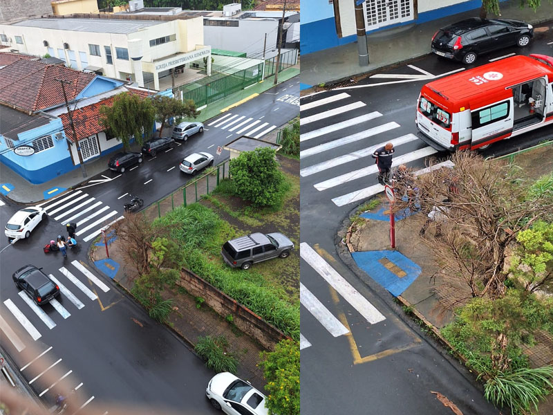 De acordo com informações, o casal estava em uma moto e transitava pela Rua Rui Barbosa, ao fazer a conversão para virar à direita na Rua Major José Inácio, devido estar chovendo, a moto escorregou na faixa de pedestre e o casal caiu ao solo. A moça que estava na garupa sofreu escoriações no joelho esquerdo. Uma técnica de enfermagem que passava pelo local, parou e acionou o SAMU. Uma viatura foi para o local e socorreu a mulher e encaminhou para a UPA do bairro Santa FelÃcia. O condutor nada sofreu.