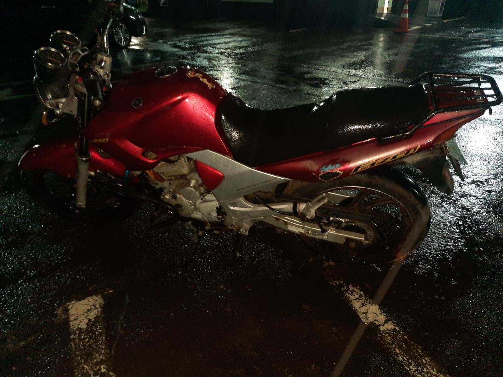 A YAMAHA/ FAZER 250 da cor vermelha havia sido furtada horas antes e a vítima nem tinha registrado boletim de ocorrência. A ocorrência foi encaminhada para a Central de Polícia Judiciária, onde o menor disse que comprou a moto e pagou R$ 300,00 ( trezentos reais). Ao ser questionado como arrumou dinheiro, ele disse que foi vendendo drogas. o adolescente, que segundo informações, mora com a avó e com a mãe, estaria com mandado de prisão e foi encaminhada para a Fundação Casa.
