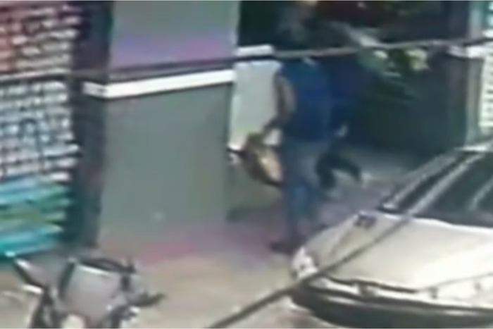 Nas imagens, é possível ver dois suspeitos caminhando pela rua. Um deles segura uma caixa de papelão, enquanto o outro carrega bexigas. Ambos baixam a cabeça, para não serem reconhecidos.