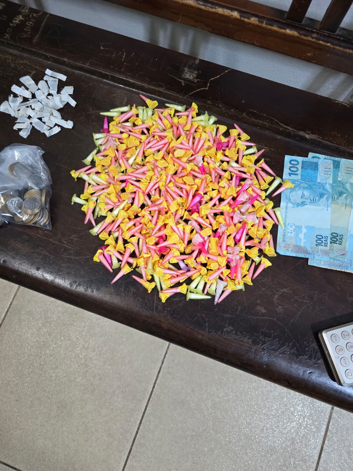De acordo com informações, policiais militares estavam em operação pela Vila Jacobucci, quando avistaram  um indivÃduo pegando algo através de uma portinhola. O local já é conhecido por ser ponto de venda de drogas. Esse indivÃduo foi abordado e com ele foi encontrada uma pedra de crack. Ao ser indagado, confessou que havia acabo de comprar a droga. Os policiais avistaram dois indivÃduos saÃram correndo pelos fundos da casa. Eles carregavam uma sacola. O local tinha duas portas, sendo uma reforçada e os policiais não conseguiram deter os dois suspeitos. No telhado foi encontrada uma sacola branca e no seu interior continha droga e dinheiro. Ainda no interior da primeira sala do barracão,  foi localizado mais uma quantia em dinheiro e uma máquina de cartão de crédito.  O usuário foi encaminhado para a Central de PolÃcia Judiciária, onde foi qualificado e liberado. No total foram apreendidos 422 pinos de cocaÃna, 116 porções de maconha, 9 porções brutas de maconha ( maiores), 31 porções de  "dry", R$ 2027,90 e uma máquina de cartão.