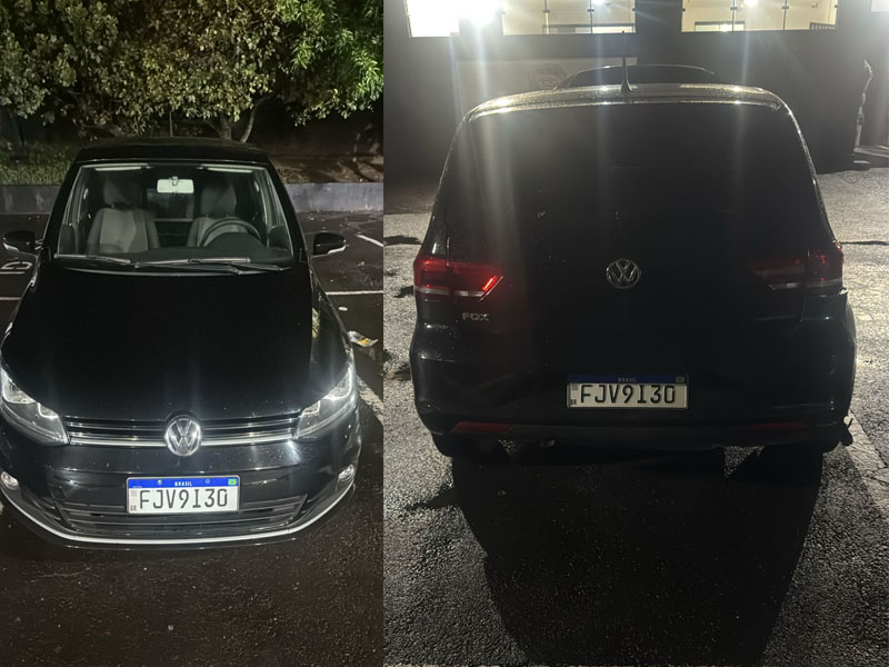 Através dos sinais identificadores do veículo,  constatou-se que o chassis estava lixado e pintado, sem qualquer numeração. Pelo número do motor,  constatou que o veículo trata-se de um VW Fox, anos 2020, placas FWD2A15, produto de furto em São Paulo/SP, divergente da placa que ostentava FJV9I30, a qual consta em um veículo VW Fox ano 2015 de Suzano/SP.