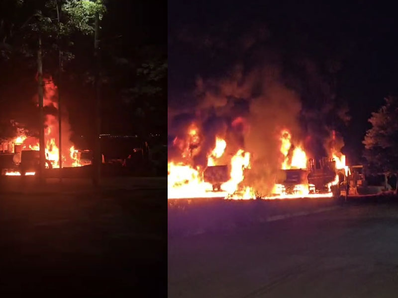 De acordo com informações, eram por volta das 3h00, quando o Corpo de Bombeiros foi acionado no local para atender o sinistro. Os caminhões ficaram completamente destruÃdos. Ninguém ficou ferido. Acredita que o fato tenha sido criminoso.
