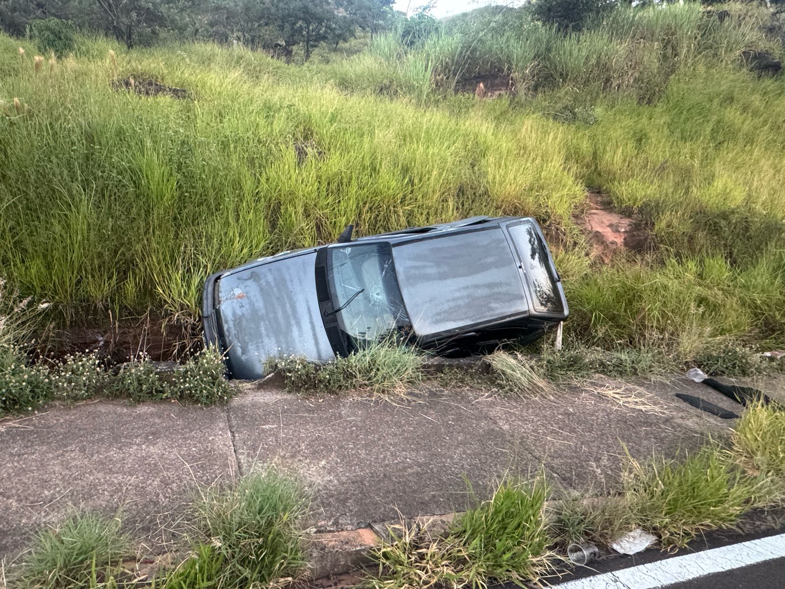 De acordo com informações, o condutor perdeu o controle do volante, saiu da via e caiu na vala. Apesar dos danos materiais, ninguém ficou ferido.